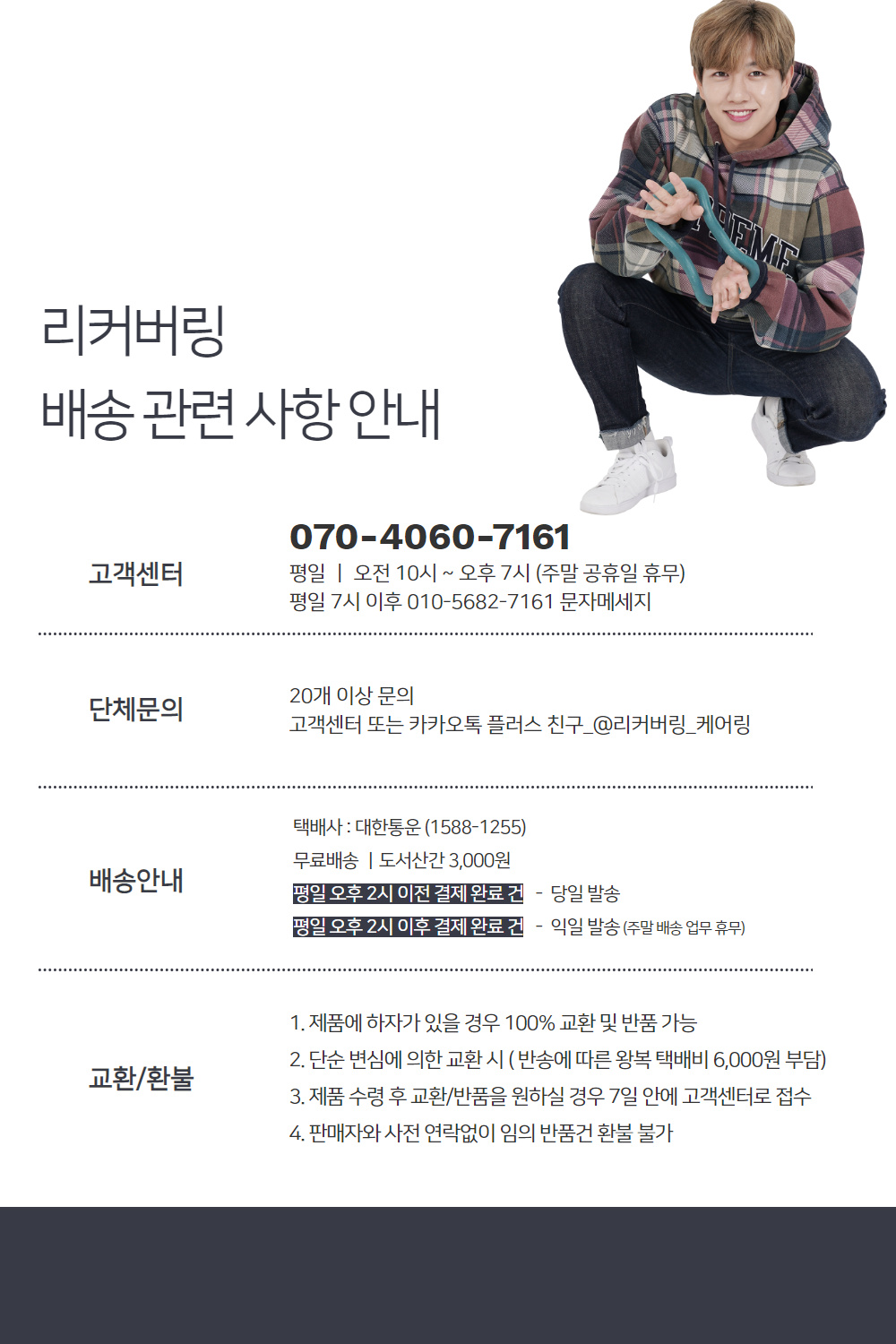 온라인 전용 고객센터 : 070.4060.7161(010.5682.7161)Mon - Fri 10:00 - 19:00Lunch pm 12:00 - 13:00Sat.Sun.Holiday - Day Off